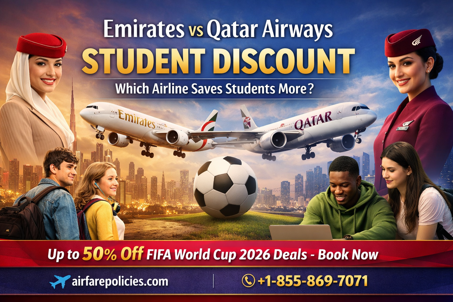 We’re diving deep into the Emirates airlines student discount and comparing it head-to-head with the student offers from Qatar. Whether you are flying from New York to Dubai or Los Angeles to Doha, understanding these discounts can save you hundreds of dollars. If you get confused while booking, do not hesitate to reach out to our experts at +1-855-869-7071 for personalized assistance. Let’s break down the fares, flexibility, and fine print to see who wins this battle.